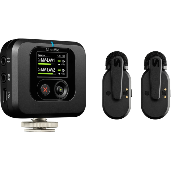 Shure MOVEMIC Kit 2-Channel Lavalier Microphone + Receiver Elevate your content with the Shure MoveMic Two Receiver Kit, the ultimate solution for capturing professional audio on mobile phones, cameras or computers. This wireless clip-on microphone system comes with the MoveMic Receiver, expanding compatibility to mirrorless and DSLR cameras, computers, and third-party apps on your mobile phone. With up to 24 hours of recording, quick setup and two channels of high-fidelity audio, this wireless microphone for cameras lets you capture every moment. - Two-channel wireless microphone system with Receiver for use with cameras, computers and direct-to-phone connectivity. Pair both microphones directly to your iOS or Android device using the Shure MOTIV Video or Audio apps or to the - MoveMic Receiver for use with cameras and third party mobile apps.- Connect your MoveMic Receiver to your mobile phone for additional compatibility with third-party and native apps on your mobile phone. Direct-to-phone connectivity is only recommended for use with Shure MOTIV apps.- Carefully designed microphone form factor to be as small and discreet as possible.- Created by same Shure team behind the professional wireless microphone systems used by the world's leading artists, venues and festivals.- 24 hours of recording on the go: MoveMic lavaliers provide eight hours of battery life within the microphone, with an additional two full charges ready in the convenient charging case. The MoveMic Receiver needs to be charged separately.- The MoveMic Two Receiver Kit offers instant setup and connectivity, enabling you to record in seconds without missing a beat.- Choose between direct-to-phone wireless, or use the MoveMic Receiver with your camera, for up to two channels of high-quality audio with any device.- Utilizing custom acoustic design and proprietary wireless software, MoveMic delivers professional audio quality beyond traditional mobile devices.- The free ShurePlus MOTIV apps allow you to customize your audio and video settings for optimal recording. Configure gain, limiter, EQ, compression and noise reduction within the apps.- Rated IPX4, MoveMic Two is designed to withstand rain, spills and splashes, ensuring your content is not limited by environmental conditions.