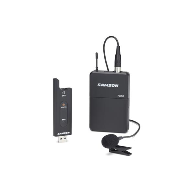 http://www.samsontech.com/samson/products/wireless-systems/xpd-series/xpd2lav/ 2.4GHz USB digital wireless system Ideal for broadcasting, live streaming, presentations and more Plug-and-play operation with Mac and Windows Works with iPad via Apple's Lightning to USB Camera Adapter Works with Android devices via a host OTG adapter RXD2 USB stick receiver Receiver features a 1/8" (3.5mm) headphone/monitor output PXD1 beltpack transmitter with
