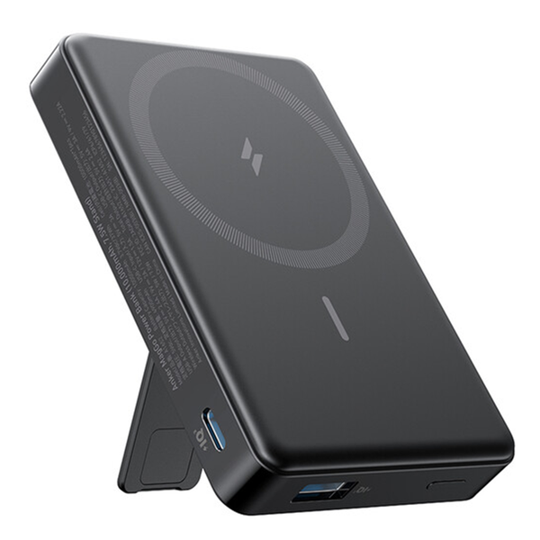 Charge your mobile devices on the go with the lightweight and compact MagGo Magnetic 10,000mAh Wireless Power Bank from Anker. Providing you with a 10,000mAh capacity, you have enough power to recharge a wide range of devices multiple times over with a maximum output up to 20W and 18W via USB-C and USB-A ports, respectively. You can snap the MagGo to your phone magnetically and charge your device wirelessly with up to 7.5W output, backed by Power Delivery and QC technologies. The USB-C port also acts as an input, supporting up to 15W of charging power. An integrated kickstand adds hands-free support, enabling you to prop your phone up so you can view your media with ease.