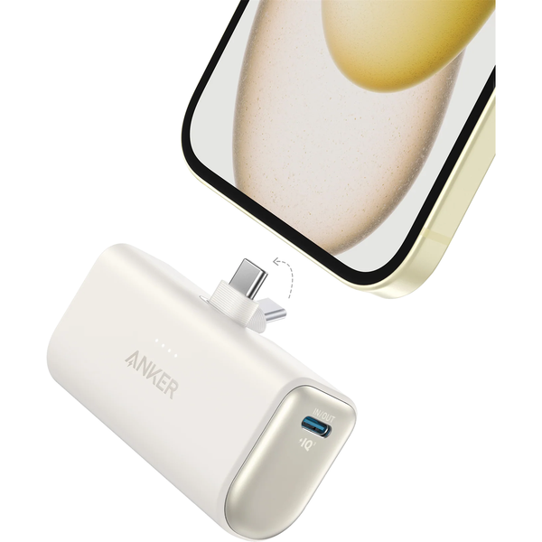 ANKER Nano 5000mAh 22.5W Built-In USB-C Connector Power Bank - White