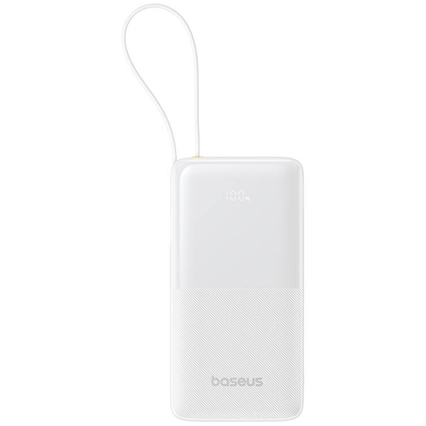 Baseus Bipow 2 10000mah 20W Digital Display Power Bank With Built-in USB-C Cable - Moon White
