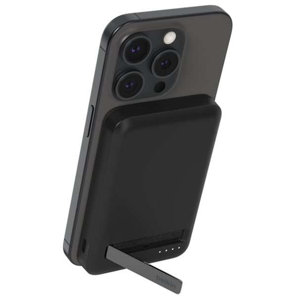 Whether you're gaming, streaming or scrolling, the magnetic power bank holds your device at the perfect angle for viewing without a clip or mount to cover any part of your screen. A built-in kickstand allows you to view your screen while you continue to surf the web or take calls.