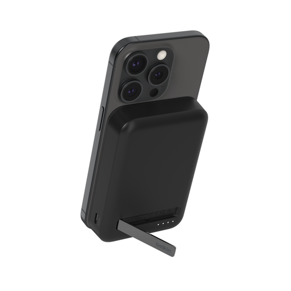 Wirelessly charge iPhone and other Qi2-enabled smartphones quickly and safely with our BoostCharge Pro Magnetic Power Bank with Qi2 15W 10K§. Your Qi2 and MagSafe compatible devices will have easy and seamless on-the-go charging up to 15W. Watch video, stream or create content at the perfect viewing angle with the integrated kickstand - even while your device is charging.