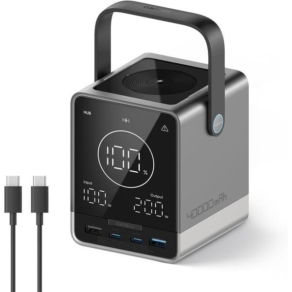 Ultra-Large Capacity of 40,000mAh: One charge, for 7 days demand. Enough for 7 times of fully charging an iPhone 15 or complete charge of a MacBook Pro. Perfect choice for working on the go, traveling, or outdoor camping. Portable &; Stylish Design: Compact in size with a carefully crafted handle for enhanced handling portability. The CUKTECH 30 is airline-approved and suitable for diverse settings, making it an excellent choice for outdoor photographers, social media influencers, content creators, and more. All-around Ports Collection: Equipped with 2 USB-C, 2 USB-A ports, and a Max 20W wireless charging, supports up to 5 devices charging at the same time with Max 300w output. Electrical backup for family&;friends gatherings, eliminating the need for multiple chargers and providing the convenience of charging multiple devices simultaneously. Dual-way 140W Flash Charge: Quick self-charging and single-port output reach incredibly 140w, fully charging the power bank in just 2.5h. Compatible for PD3.1 and other protocol, it can deliver the same 140W output as the origin charger for the 16-inch MacBook Pro. High-Quality Hardware: Equipped with auto-grade batteries packs and a gaming console-level intelligent cooling fan, (PWM) adaptive fan algorithm can adjust the fan speed on device temperature intelligently, maximizing the overall performance and ensuring optimal utilization.And the CUKTECH power bank meets safety certifications such as UL, CE, CB, and FCC etc, which provide a better and safer charging experience. Screen Display: Charging status at a glance. Provides a comprehensive overview of remaining battery life, input power, output power, HUB mode, and more. Stay in control with real time usage details accessible at your fingertips. Included Accessories: The package includes CUKTECH 30 Power Bank, a 5A 240W C to C charging cable and a user manual. For air travel, please declare to airline authorities in advance if carrying the power bank on board.