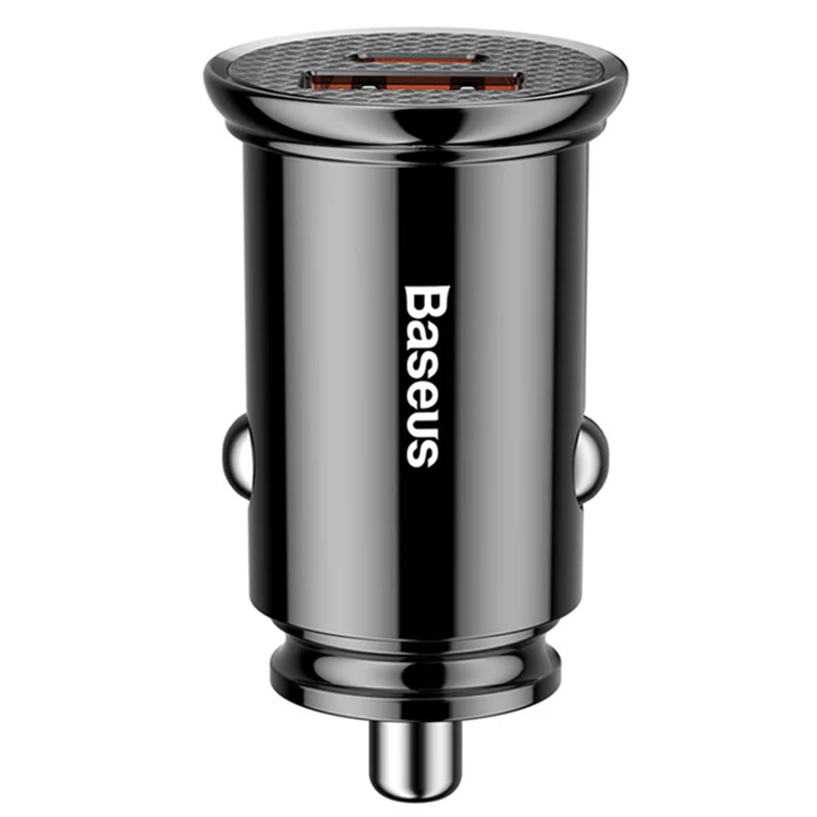 Baseus Circular Plastic A+C 30W PPS Car Charger Black - Smart car charger with support for numerous fast charging technologies- Compact design - The charger has a simple, stylish design and a small size , thanks to which it does not take up much space in the car .- Fast charging compendium - The accessory supports all the most popular fast charging technologies. From Power Delivery 3.0 ( PD 3.0 ) and Quick Charge 4.0 ( QC 4.0 ), through SCP (Huawei) and AFC (Samsung), to VOOC (Oppo).- Even 30W! - The charging power can reach (depending on the equipment) up to 30W . Speed like a classic wall charger.- Up to 2 devices at the same time - 2 ports allow you to renew the energy of up to 2 devices at the same time .- Durable and durable - The charger housing is made of high quality materials: ABS + PC .- Several levels of protection - Among others, against overcharging, overheating and short circuits. Complete protection for both your accessory and your phone .- Intelligent management system - Adjusts the appropriate voltage to a specific device.- LED backlight - Delicate blue light makes it easy to locate and use the gadget at night . Type-C with 30W Power (4.5V/5A, 5V/4.5A, 9V/3A, 12V/2.0A, 15V/1.5A, 20V/1.2A) and Output USB-A (4.5V/5A, 5V/4.5A, 9V/3A, 12V/2.0A).