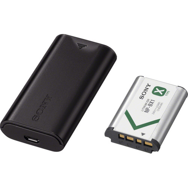 The Sony Battery and Travel DC Charger Kit with NP-BX1 Battery includes a rechargeable battery pack (NP-BX1) and a battery charger (BC-DCX) so you can charge the battery from your computer's USB port. Additionally, you can charge from a wall or car power outlet using a USB adapter (not included). - For Select Cyber-shot/Action Cam Models- Includes NP-BX1 Battery &; USB Charger- Compact, lightweight design makes it perfect for travel- Includes Micro USB terminal for DC input- Full charging time 155-230 minutes- Can be charged from PC, in-car or via AC adaptor