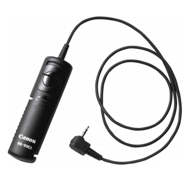 Canon RS-60E3 Remote Cable Switch An 60cm remote release for EOS cameras featuring an E3-type socket. Two-stage control button behaves in the same way as your camera's shutter release, activating AF on a half-press. The switch also features a lock allowing you to lock the shutter button down for long exposure times or unattended continuous shooting. Compatible with G10, G11, G12, G16, EOS Digital Rebel series, 60D, 70D, 80D, Elan II/IIE, Elan 7/7E, Rebel Ti/2000/G/GII/X/XS, IX/IX Lite, SX50 HS, and EOS Rebel T1i, T2, T2i, T3, T3i, T4i, T5, T5i