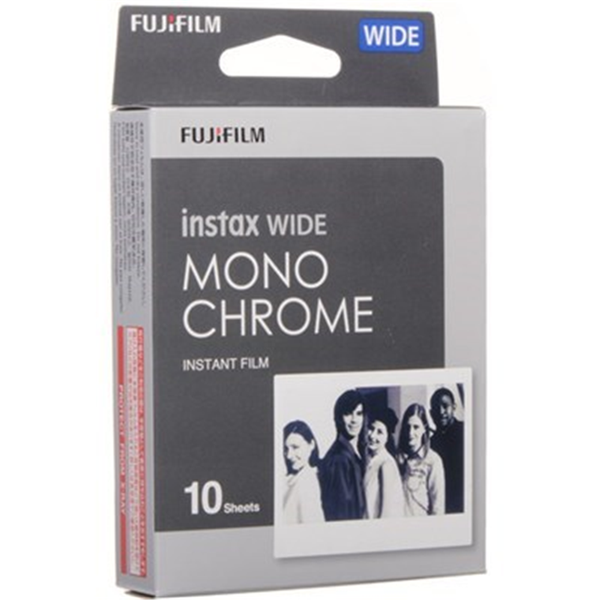 Compatible with a wide range of cameras from the Fujifilm Instax Wide series, each pack of Fujifilm instax WIDE Monochrome Film contains 10 sheets of instant black and white film. This is the film to go for if you are looking to achieve neutral gray tonality and normal contrast with natural shadow and highlight response when used under daylight or flash lighting. The film features a refined grain structure that provides greater sharpness and clarity and a ISO 800 film speed is versatile enough to use with a wide range of subjects. Each sheet of 108 x 86mm film develops into a glossy 99 x 62mm image surrounded by a white border.