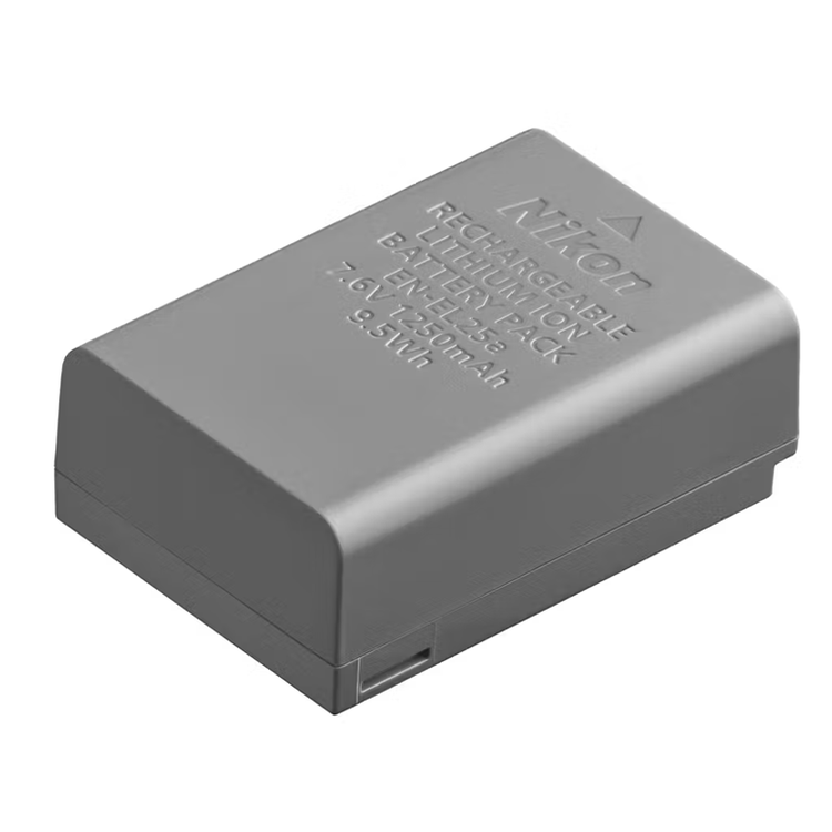 Keep your camera ready to shoot at all times with the Nikon EN-EL25A Rechargeable Lithium-Ion Battery for Z fc/30/50. Featuring a 1250mAh capacity, this battery provides enough power for your day-to-day shooting ventures. It also refuels in two ways-using an MH-32 charger or inside the camera via the EH-73P charging AC adapter. Power Your Creativity Enjoy longer shooting sessions with the Nikon Rechargeable Lithium-Ion Battery! A great spare or replacement for your old camera battery, EN-EL25A boasts an ample 1250mAh capacity. Efficient Charging Conveniently refuel this Nikon Battery using the MH-32 charger. Alternatively, you can power it up even while it's inside the camera using the EH-73P charging AC adapter. Camera Compatibility EN-EL25A Rechargeable Battery is specially made for the Nikon Z fc, Z 30, and Z 50 camera models.