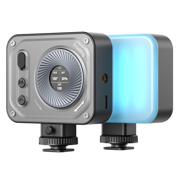 As a second-generation entry in the Vibe LED series, the SmallRig Vibe P108 Pro Mini LED Video Light retains the iconic ring-shaped metal stepless knob design and includes an embedded color LCD screen for clear parameter displaying, such as color temperature and brightness, allowing for easy one-handed adjustment. The integrated quick release cold shoe base enables seamless transitions between various lighting setups, significantly enhancing flexibility and efficiency. Key Features - Embedded Color LCD Screen- Multiple Mounting Options- Built-In 1500mAh Battery- 1.2 Hours of Battery Life at Full Power- USB-C Charging Support- 1/4"-20 Threaded Holes- Integrated Cold Shoe Mount- Simulates 2500-6500K Daylight- High-Strength ABS Frame- Durable Aluminum Alloy Construction At A Glance - User-friendly interface with an embedded color screen for easy single-handed brightness adjustment- Multiple mounting options for enhanced efficiency and flexible lighting setups- Professional color rendering performance to illuminate inspiration, delivering exceptional lighting- 1.2 hours of battery life at full power and up to 3 hours for regular shooting- Durable construction with textured anodized aluminum alloy, high-strength ABS, and PC materials- Suitable for flat-lay photo and video content creation, including tabletop and figurine photography, portraits, light painting photography, short videos, vlogs, and ambient lighting- Simulates 2500-6500K daylight and offers 12 special effects Premium RGBWW Light With a premium 5W RGBWW light source boasting CRI > 95 and TLCI > 98, the P108 delivers 1140 lux at 0.98" and 5600K. The integrated rectangular soft light panel allows a smooth transition between horizontal and vertical soft lighting setups. This light features a range of built-in special effects and excels in professional color rendering. The built-in 1500mAh lithium polymer battery supports USB-C charging, providing up to 1.2 hours at full power and 3 hours for regular shooting. It offers various mounting options, including 1/4"-20 threaded holes and a cold shoe mount, and the fixture's body is made from high-strength ABS, with anodized aluminum alloy knobs and an ABS/PC softbox. Versatile Uniform and wide light dispersion are inherent attributes of this soft light panel. With built-in cool/warm light, HSI, and special effects modes, it can simulate 2500K-6500K daylight, 36,000 color sources, and 12 special effects (police car, fire truck, ambulance, pulse, RGB slow, RGB flash, lightning 1, lightning 2, TV, fireworks, candlelight, and party).