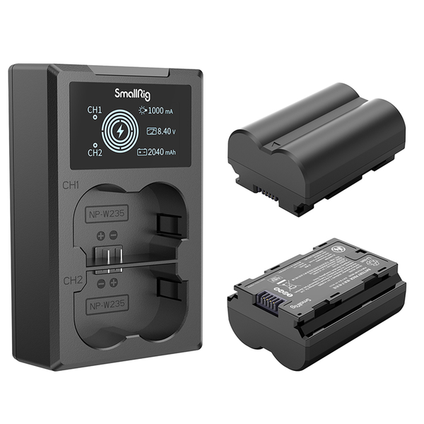 SmallRig NP-W235 Camera Battery and Charger Kit 3822 includes two batteries and one charger. The battery, equipped with a full decoding chip, supports varied cameras perfectly without causing pop-up windows and has quality fireproof ABS and PC shell frosted to ensure fine touch and durability. It is the same size as the original battery, thus fitting seamlessly into battery compartment. The dual battery charger can charge two batteries at the same time, with its LCD screen displaying real-time charging voltage, current and charged capacity. It comes with built-in USB-A charging cable and USB-C input interface, allowing it to be charged via USB adapter, car charger, power bank. - Sufficient Power Supply: SmallRig NP-W235 battery 3822, replacement NP W235 battery for Fujifilm NP-W235 Battery, comes with two 2040mAh(Real) rechargeable batteries and a charger to brings long battery life for your videos and photos shooting, good power backup solution. - Widely Compatibility: SmallRig NP-W235 battery are fully fits for Fujifilm original camera and charger, fully decoded and no memory effect. They are suitable for Fujifilm X-T5, X-T4, VG-XT4, X-S20, GFX50S II, GFX100S, X-H2, X-H2S cameras, and more. - Multiple Charging Option: This NP-W235 battery charger has two charging methods: ? use its built-in USB-A charging cable; ? use its USB-C input interface. It allows being charged via USB adapter, car charger, power bank. - Intelligent LCD Screen: Input: 5V/2.1A, double-slot design can charge two NP-W235 batteries at the same time. When Charger powered up, you can get all the information of each battery by LCD screen, including charging current, charging voltage, charging progress and charging capacity. - Safe and Reliable: The NP-W235 charger designed with over-charging, over-current, over discharge, over-voltage and short-circuit protection ensures reassuring safety. Made by quality fireproof ABS and PC shell frosted to ensure fine touch and durability. Lightweight and compact, can be put in a bag and carried around. Note 1. For the best charging experience, power adapter with higher than 5V?2.1A output is recommended. Do not use the two input interfaces at the same time.2. Manually measured weight and size may not be accurate.3. The kit does not include USB power adapter.4. The charger comes with a meter to help display how much you charged (mAh). If the battery is temporarily disconnected, the meter will recalculate its charged capacity(mAh).