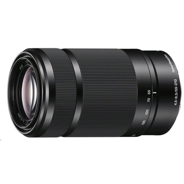 E 55-210mm F4.5-6.3 OSS- 3.8x Zoom- Optical SteadyShot Image Stabilization- Quiet Internal Focusing- ED Glass Elements- Circular Aperture for Attractive Defocusing- Slim, Elegant DesignThe black E 55-210mm f/4.5-6.3 OSS E-Mount Lens from Sony features extra-low dispersion glass, a broad zoom range and aluminum alloy construction. On an APS-C camera, this zoom lens has a 82.5-315mm focal length range, suitable for event photography and portraiture alike. Internal focusing and linear motor-driven AF system help create responsive yet quiet focus while minimizing mechanical noise. Additionally, a separate manual focusing ring capable of Direct Manual Focus allows seamless transitions from AF to manual focusing. Two extra-low dispersion elements, combined with Sony's Optical SteadyShot (OSS) image stabilization, improve the overall quality of images captured at the telephoto end of the zoom range, especially while shooting in low-light conditions. OSS is capable of reducing the appearance of camera shake by up to four stops. An aspherical focusing lens located in the center of the optical path help to reduce aberrations throughout the zoom range as well as improve the AF response time of the lens.
