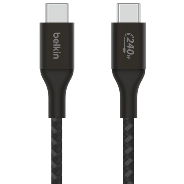 BoostCharge USB-C® to USB-C Cable 240W Designed for Extended Power Range (EPR) up to 240W, our USB-C to USB-C cable is compatible with the latest USB-IF guidelines on USB 2.0 and PD 3.1 devices. Charge your MacBook, Chromebook, gaming laptop, iPad and other high-powered USB-C devices with a durable cable that delivers safe and optimal charging speeds. - Supports fast charging up to 240W for laptops, tablets, and smartphones - Fast charge MacBook Pro 14" from 0-50% in 31 minutes**