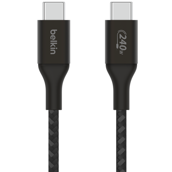 BoostCharge USB-C® to USB-C Cable 240W Designed for Extended Power Range (EPR) up to 240W, our USB-C to USB-C cable is compatible with the latest USB-IF guidelines on USB 2.0 and PD 3.1 devices. Charge your MacBook, Chromebook, gaming laptop, iPad and other high-powered USB-C devices with a durable cable that delivers safe and optimal charging speeds. - Supports fast charging up to 240W for laptops, tablets, and smartphones - Fast charge MacBook Pro 14" from 0-50% in 31 minutes**