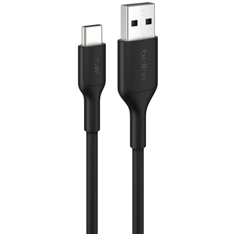 BoostCharge USB-A to USB-C Cable 15W, 0.5ft/0.15m, Black This USB-A to USB-C charging cable charges your iPhone 16 from 0-50% in 45 minutes† and works with and Samsung Galaxy S25 and earlier plus most tablets. Our first cable made using recycled materials[1], it's soft, yet durable, and withstands 300K bends and 20K plugs[2]. - Fast charge your iPhone 16 and earlier from 0-50% in 45 minutes[3] or your Samsung Galaxy S25 and earlier - 50% PCR (post-consumer recycled) TPE material in cable boot, strain relief and jacket help to reduce plastic waste without compromising charging performance - Safely and durably built to survive 300K+ bends and 20K+ plugs[2]- Premium quality materials and design - Compact and easy to carry and store - USB-IF-certified - Complies with Global Recycled Standard 4.0. Certified by Intertek TE-00114861