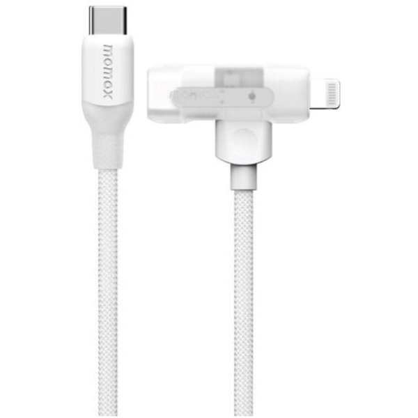 Momax 60W 1.5m 2-in-1 USB-C to Lightning Fast Charging Cable White - Apple MFi Certified, Durable Premium Braided Nylon, Slide to switch Lightning to USB-C cable, Translucent design