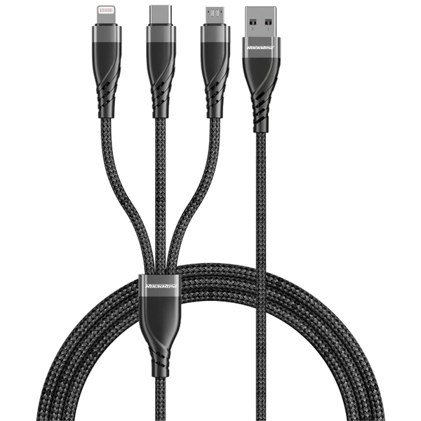 RockRose Hercules Trident 3-in-1 Charging Cable - 1m - - USB-A to Micro USB & USB-C & Lightning