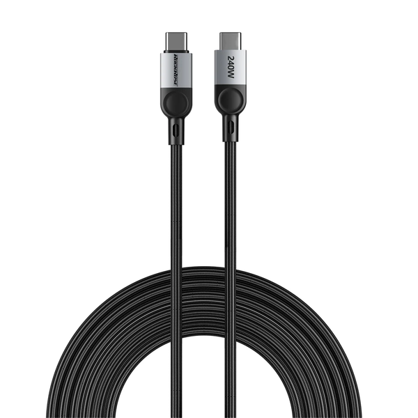 Rockrose Sliverline CC Pro Max 240W PD Quick Charge 2M USB-C to USB-C Fast Charging &; Data Sync Cable - 5A 240W Max Quick Charge- USB-C to USB-C- 200CM Length- Material: PVC + Nylon + Metal Casing