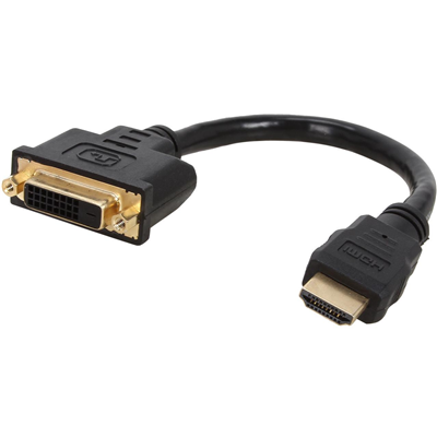 STARTECH HDDVIMF8IN 8in HDMI to DVI-D Video Cable Adapter-Connect an HDMI device to an DVI-enabled device using a standard DVI-D cable-Connect your HDMI-enabled laptop or dekstop computer to a DVI monitor-Swap HDMI for DVI-HDMI to DVI Adapter / HDMI to DVI Adapter Cable / HDMI Male to DVI Female-Convert a DVI monitor to HDMI-Eliminates the need for multiple cables &; reduces clutter-The 8" dongle reduces the potential of blocking other available ports &; removes strain from the HDMI/DVI connectors-Compatible with Lenovo Thinkpad Edge E531