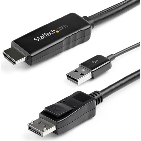 Astonishing picture quality With support for 4K at 30Hz, you get a sharp, crisp picture that's richer and more true-to-life than traditional HD, with far greater detail. The HDMI to DisplayPort Adapter cable delivers Ultra HD content to your DisplayPort monitor and supports 7.1 channel surround sound audio. The HDMI to DisplayPort adapter is backward compatible with 1080p and 1440p displays, which makes it a great accessory to future-proof your existing setup for 4K video. The Choice of IT Pros Since 1985 StarTech.com conducts thorough compatibility and performance testing on all our products to ensure we are meeting or exceeding industry standards and providing high-quality products to IT Professionals. Our local StarTech.com Technical Advisors have broad product expertise and work directly with our StarTech.com Engineers to provide support for our customers both pre and post-sales. HIGH PERFORMANCE 2m/6.6ft HDMI 1.4 to DisplayPort 1.2 (DP) active adapter cable supports 4K 30Hz (3840x2160), 7.1ch Audio, HDCP 1.4 | Backward compatible w/ 1440 and 1080p, USB Powered INTEGRATED VIDEO ADAPTER CABLE HDMI to DP male to male converter cable minimizes signal loss &; potential failure points; Built-in 16"/40cm USB power cable that eliminates the need for external power HOST COMPATIBILITY Works with any HDMI device including laptops, desktops, tablets, Chromebooks, 2-in-1s and media players; perfect for working from home or in the office DISPLAY COMPATIBILITY Tested &; verified with range of DisplayPort (DP) monitors including Dell UltraSharp, LG, HP, Asus, Acer &; ViewSonic EASY TO USE All-in-one adapter cable provides an easy, driverless setup and works with any OS including Windows, macOS, Chrome OS &; Linux