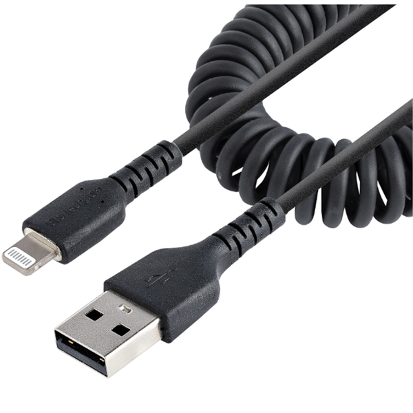 This coiled Lightning to USB A cable can withstand the daily demands of charging and syncing your mobile devices. It contracts to 1ft (32cm) making it compact and convenient to store. Built for Daily Use The durable Lightning charging cable has aramid fiber reinforcement that shelters it from the stress of frequent bends. This also lets the cable flex without over-stretching or damaging the core of the cable. Flexible Strain Relief The Lightning to USB A cable is constructed to prevent the connector from separating from the jacket. The extra-long strain relief molding is tested to withstand over 5,000+ bend cycles at a 180° angle. Superior Connection The durable cable supports all USB 2.0 specifications providing a dependable connection for all your Lightning devices. It is also Apple MFi certified which is guaranteed for fast and reliable charge and sync from USB-A charging ports.