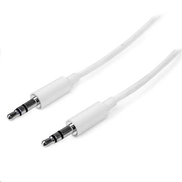 The MU3MMMSWH 3m White 3.5mm Slim Audio Cable features male to male 3.5mm connectors, enabling you to connect your portable 3.5mm mini jack audio devices (iPod®, iPhone®, iPad®, MP3 player, etc.) to your car or home stereo system.Featuring a slim connector molding, this aux stereo cable fits nicely into a 3.5mm headphone jack, even if your mobile audio player is in a protective case.