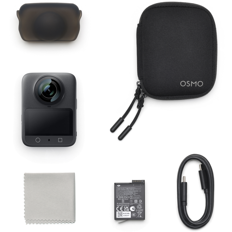"DJI's first" refers to Osmo 360 being DJI's first camera, as of its launch date on July 31, 2025, to feature two 4000 × 4000 square sensors capable of capturing native 8K/30fps 360° video with 2.4 µm large pixels.5. The Osmo 360 Standard Combo does not include an Invisible Selfie Stick, which can be purchased separately.6. This feature is only supported for recording at 60fps or below.7. Measured under laboratory conditions at 25° C (77° F), while recording 6K/24fps 360° video, with Endurance mode on, Wi-Fi off, Gesture Control off, Voice Control off, Editing Assistant off, and the screen off. Data was collected in a controlled environment and should be taken as reference only.8. To achieve the 600MB/s transfer speed, use the included USB-C to USB-C PD Cable (USB 3.1), make sure your computer supports USB 3.1 high-speed transfers, and transfer data from the camera's built-in storage.9. Single-lens mode only.10. Measured under laboratory conditions at -20° C (-4° F), while recording 8K/30fps 360° video, with Wi-Fi off, Gesture Control off, Voice Control off, Editing Assistant off, and the screen off. Data was collected in a controlled environment and should be taken as reference only.11. Before use, please ensure the battery compartment cover and USB-C port cover are securely closed. It is not recommended to use the camera body only for long-term underwater shooting or in environments with high water impact pressure. Osmo 360 has an IP68 waterproof rating. Do not use the camera in hot springs or extreme underwater environments, or let it come into contact with corrosive or unknown liquids. The camera alone is waterproof to a depth of 10 meters, but due to the convex fisheye lens design, underwater light refraction may cause image distortion and stitching errors. Therefore, it is not recommended to bring the camera body only for underwater shooting.12. The Osmo 360 Standard Combo does not include an Invisible Selfie Stick or the Adjustable Quick-Release Adapter Mount, which can be purchased separately.13. Sold separately. 14. After thorough testing, Osmo 360 supports the following Bluetooth headsets: SENA 50S, VIMOTO V10x, AirPods (3rd generation), AirPods Pro 2, and HUAWEI FreeBuds 4.15. The charging time was measured under laboratory conditions at 25° C (77° F), while using the DJI 30W USB-C Charger, with the photo taking/video recording functions off and the screen off.16. When mounting on a vehicle for third-person perspective shots, always use it with the Dual Heavy-Duty Clamp and the High-Strength Carbon Fiber Invisible Selfie Stick.17. Recommended for handheld use only. Do not use in environments with strong vibrations. For vehicle-mounted applications (e.g., motorcycles or cars), use the High-Strength Carbon Fiber Invisible Selfie Stick together with the appropriate stabilizing accessories.18. Suitable for stable, level surfaces in windless environments. Do not use while in motion.19. When using it as a tripod, connect the camera directly and avoid attaching an extension rod to prevent camera damage in case of tipping.