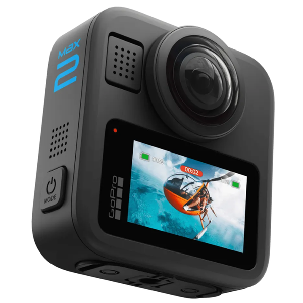 TRUE 8K 360 VIDEO MAX2 delivers True 8K, resulting in up to 21% more resolution than the competition. This means sharper detail and unmatched image quality you only get from GoPro. MAX2 NEVER MISSES 360 video captures everything around you-just record and pick the best angles later in the app. You never have to aim, but always get the shot. GET THE SHOT. NOT THE POLE. Capture those incredible invisible selfies, third-person drone-like footage and more iconic 360 shots. THE ONLY 360 CAM BUILT FOR THIS MAX2 is the toughest, most versatile 360 camera because it's a GoPro. It thrives in high speeds, water, dirt, snow, and is built to perform in any environment. TWIST-AND-GO REPLACEABLE LENSES MAX2 replaceable lenses are made from super-strong optical glass, making them tough and difficult to break. And if they ever do get damaged, you won't have to replace the entire camera-just swap lenses and get back to the action. SUPER SLO-MO IN 360 Slow the action way down with amazing 4K100 spherical video (that's 3X slo-mo). Or go with a higher-resolution 5.6K60-up to 2X slow motion. 10-BIT COLOR IN 8K + 300MBPS + GP-LOG Capture over 1 billion colors in 8K, delivering a more realistic image with true-to-the-eye colors, and up to 300Mbps bitrate with GoPro Labs-the highest on any consumer 360 camera. And pro-users can use GP-Log Encoding with LUT. EPIC 29MP 360° PHOTOS Get ultra high-res 360° photos and legendary GoPro point-of-view shots. You'll have the flexibility to crop, zoom and Reframe for the exact look you want in the Quik app. TURN 360 FOOTAGE INTO RAD VIDEOS FROM THE CLOUD Editing 360 footage is called Reframing, and the creative possibilities are endless. It's super easy to pick the shots you want. Then track objects, add dynamic movements and transitions, even use multiple Reframe modes in the same clip-all with just a few taps. FREESTYLE YOUR EDITS With MotionFrame, simply move your phone within 360 footage to find the best angles. KEYFRAMES Easily select your field of view at specific moments in time, and transitions are automatically generated between them. CAMERAFX Make your videos more exhilarating than ever with CameraFX. These let you easily add pro-level motion with effects like Spin, Flip, Roll, Wobble, Tiny Planet and more. EASY POV + SELFIE MODES The easiest way to get GoPro's world-famous, immersive POV and selfies. The camera automatically shows you a front-facing 180° view, or the reverse angle for an awesome third-person selfie.* 180° IN 4K60 Get super wide, immersive POV shots from the front or back lens with the Max HyperView digital lens. It delivers a 180° field of view in stunning 4K60. 4 other digital lenses are available with 4K60, too-Linear, Wide, Ultra Wide and Max SuperView. SAY GOODBYE TO SHAKY VIDEOS Max HyperSmooth is our most powerful video stabilization, delivering maximum smoothness in the roughest conditions. And 360 Horizon Lock keeps all your shots level, whether you're spinning, flipping or chasing your kids. IMMERSIVE AUDIO + PRECISE CONTROL When shooting 360, the 6-microphone array captures clean stereo audio from all around you + reduces wind noise for the best sound quality ever in a GoPro. In Single Lens Mode, you can automatically match stereo audio width to your video field of view, or manually select Front, Back, or Match Lens options for precise control over where your audio is captured. 29 MILLION PIXELS Two powerful image sensors combine with premium stitch quality to deliver 29 million pixels-and true 8K resolution of your 360 video.