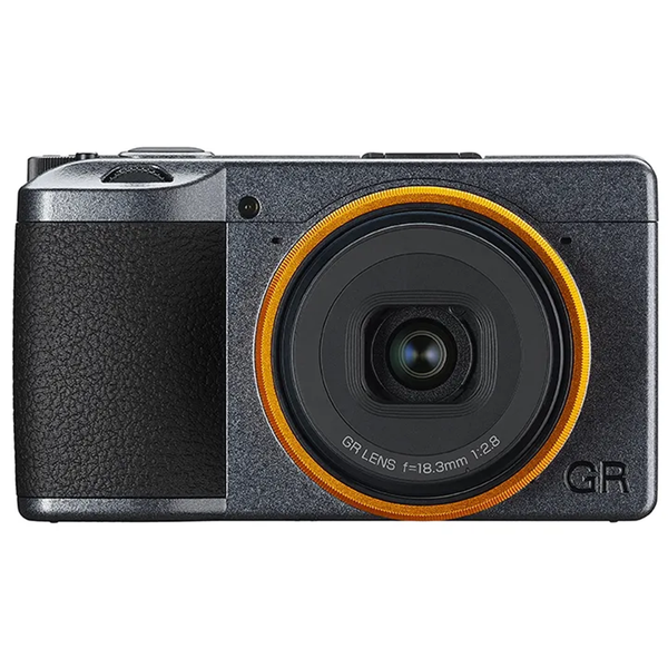 Ricoh GR III Digital Camera Street Edition In ever-changing city views, capture once-in-forever moments on the street with the special GR. - Digital Camera Only- 24.2MP APS-C CMOS Sensor- GR Engine 6- 28mm f/2.8 Lens (35mm Equivalent)- 3-Axis Shake Reduction System A limited-edition model featuring a metallic gray body and orange-yellow ring cap, inspired by street photographers who are in their element on the asphalt pavement. The unique surface texture is smooth but enables excellent grip, a combination of design and functionality. The Full Press Snap feature allows you to focus on a specified distance and shoot, all through touch screen controls. With this fast-shooting function, you can set up your shot precisely, then capture the photo at the perfect moment. *This feature can be added to the standard GR III model by installing the latest function expansion firwmare. The Street Edition features a special power-off graphic with a street-like background and special logo.
