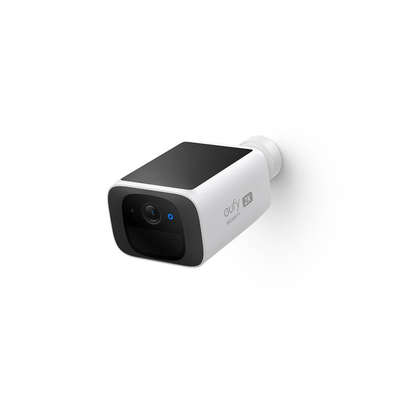 S220 SOLOCAM eufy security S220 SoloCam, Solar Security Camera, Wireless Outdoor Camera, Forever Power, 2K Resolution, Wireless, 2.4 GHz Wi-Fi, No Monthly Fee. Tiny But Might With Continuous Power With its mnimal size, this feature-packed solar camera fits just about anywhere, and is designed to escape notice by would-be intrusters. Install it where you like in just moments, then the intergrated solar panel takes care of charging for a maintenance-free security experience. Crisp Clear Details Get the full picture in perfect detail and know what's happening outside your home. Find Brightness in the Dark The f/1.6 aperture gives exxceptional night vision. AI Detects Humans It can tell the difference between a human or just some branches blowing in the wind. One Install Lasts a Lifetime 5-Minute Install is Truly Set and Forget Simple DIY installation avoids the cost of a contractor and takes just 5 minutes. Attach the mount anywhere thanks to the wire-free design, then click the camera in place. Holds Up in Any Weather With its IP67 rating, this camera keeps up through rain, hail, and shine. Place it outside and don't stress about the weather or footage being unavailable due to a storm. Bursting With Incredible Features 2-Way Audio Communicate clearly with guests even if you're not there to greet them. Deter intruders with a "stay away" message and see them react in real time. Voice Assistant Compatible Integrates perfectly with Google Assistant and Alexa to make using it even easier and accessible in more ways. Set Security Zones Create smart detection zones and only be alerted when movement is detected within those areas. Set up to 2 zones for convenience and peace of mind. See Wider With an impressive 135° field of view, you can see more of the picture, wherever you place your camera.