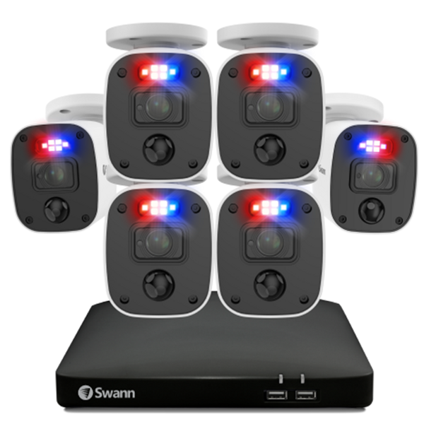 The Swann Home 6 Camera 8 Channel 2K DVR Security System is your ultimate solution for 24/7 surveillance. Featuring richer 2K video, controllable sensor spotlights with deterrent red & blue flashing lights, and cameras equipped with microphones for audio recording, this system ensures detailed visual and audio evidence. It's weatherproof for all-year-round protection and includes a 256GB MicroSD Card for recording. Designed for both business and home use, it supports expansion with additional cameras, offering comprehensive coverage and control through the Swann Security app.