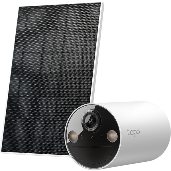 Tapo C410 KIT Solar-Powered Security Camera Kit - Uninterrupted Power Supply: Enjoy a maintenance-free security experience with the Tapo Solar Panel, which provides a continuous power supply and flexible installation.- Wire-Free, Installs Almost Anywhere: Eliminates the need for outlets and enables flexible placement. Add security to your home, wherever, whenever.- Superior 2K 3MP Visuals: Capture every detail in crystal-clear 2K resolution, with advanced algorithms ensuring perfect exposure day and night.- Colour Night Vision: See the night in vivid colours with the large aperture lens and built-in spotlights effective up to 30 feet (9m).- Flexible Storage Options: Choose from local microSD storage up to 512GB or the secure Tapo Care cloud service for additional peace of mind.- Smart Person Detection: Get alerts when a person is detected, reducing false alerts and unnecessary notifications.- Intelligent Phone Notifications: Customize activity zones for precise motion detection and phone alerts, focusing on what truly matters.- IP65 Weatherproof: Offers excellent waterproof and dustproof performance for outdoor scenarios.