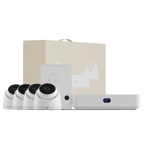 The UNVR Instant kit delivers an all-in-one security solution right out of the box. Bundled with a 1TB HDD and 4x G5 Turret Ultra cameras for a complete setup.