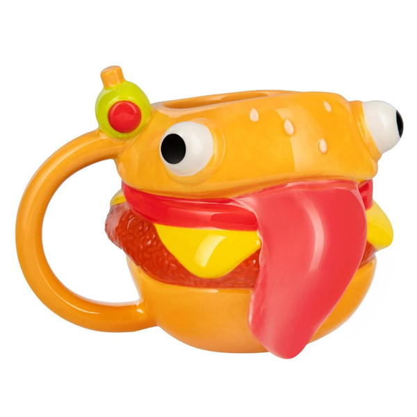 The Paladone PFNDBM Fortnite Durrr Burger Shaped Mug is a playful and distinctive piece of drinkware inspired by the popular Fortnite universe. This officially licensed ceramic mug is designed to resemble the in-game mascot, Durrr Burger, a quirky fast-food character known for its oversized eyes, bright orange hue, and signature olive on a toothpick. Measuring 450 ml (15 fl oz), it offers ample capacity for your favorite beverages. The mug's unique shape and vibrant detailing make it a standout addition to any gaming enthusiast's collection. Crafted from high-quality ceramic, the Durrr Burger Mug ensures durability and a comfortable grip. However, it's important to note that due to its intricate design, the mug is not suitable for dishwasher or microwave use. This makes it more of a collectible item than a daily-use mug, ideal for display or occasional use during gaming sessions. Its whimsical design brings a touch of Fortnite fun to your coffee breaks, making it a perfect gift for fans of the game. Whether you're sipping a hot beverage during a gaming marathon or showcasing it as part of your Fortnite memorabilia, the Durrr Burger Shaped Mug adds a quirky touch to any setting. Its vibrant colors and playful design are sure to spark conversations and bring a smile to the faces of fellow gamers and collectors alike. - Replicates the iconic Durrr Burger from the game- 450ml (15 fl oz) ceramic mug- Not suitable for dishwasher or microwave use- Officially licensed Fortnite product
