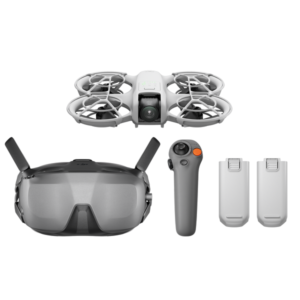 DJI Neo Drone Motion Fly More Combo DJI Neo is DJI's lightest and most compact drone to date. Combined with DJI Goggles N3 and RC Motion 3, your DJI Neo delivers immersive, head-tracked flight and effortless control for an adrenaline-filled flight experience. Notes * DJI Neo does not support obstacle avoidance. To ensure flight safety, fly within a visual line of sight. To fly beyond visual line of sight (BVLOS), ensure that the aircraft is in good condition, the user is qualified, and the flight is compliant with local regulations for BVLOS.** All data on this page was measured using a production model of DJI Neo in a controlled environment. Actual experience and data may vary depending on the environment, usage, and firmware version.*** All videos and images on this page were shot using DJI Neo by professionals in strict compliance with local laws and regulations and have been variously edited in post-production. All videos and images are for reference only. Actual results may vary. Always observe local laws and regulations and ensure the aircraft has obtained relevant certifications and airspace authorizations before flying.**** All images, videos, and screen display contents about the product itself on this page are for reference only. Actual product effects (including but not limited to appearance, colour, and size) and screen display contents (including but not limited to backgrounds, UI, and illustrations) may vary. 1. When using palm takeoff and landing, adhere to the following guidelines: operate in a windless environment as much as possible; extend your palm horizontally and keep it still, avoiding finger contact with the propellers to prevent injury; do not attempt to grab the drone while it is flying.2. Requires connecting DJI Neo to a smartphone via Wi-Fi.3. DJI Neo supports voice control in English and Mandarin only. The specific language used depends on the connected phone's system language (English or Chinese).4. Requires purchase of a specific combo or a separate purchase of a specific remote controller and goggles.5. Product weight may vary due to differences in batch materials and other factors. Refer to the actual product.7. As of September 2024.8. 4K/30fps video recording is available under all control methods of DJI Neo. Except for motion control, 4K/30fps videos with HorizonBalancing are supported in all other control methods. When DJI Neo is paired with DJI Goggles 3 and DJI RC Motion 3, it can record 16:9 4K/30fps videos with RockSteady/HorizonBalancing or record 4:3 4K/30fps videos with no stabilisation.9. Some shooting modes require connecting DJI Neo to a smartphone via Wi-Fi and enabling them in the DJI Fly app.10. The 10km video transmission distance can only be achieved with FCC compliance. The data was measured in an unobstructed outdoor environment free of interference and showed the farthest communication range for one-way, non-return flights. The maximum video transmission distance in the actual flight scenarios is limited by the drone's maximum flight distance. Refer to the actual use.11. When controlling the drone with the DJI Fly app or a standard remote controller, RockSteady and HorizonBalancing are enabled simultaneously and cannot be turned off. When controlling with DJI Goggles plus RC Motion or the FPV Remote Controller, you can choose to enable RockSteady, HorizonBalancing, or turn off stabilisation. When controlling the drone without a remote controller or with the DJI Fly app, the HorizonBalancing angle is ±30°. When controlling the drone with a remote controller or using motion control, the HorizonBalancing angle is ±45°.12. Measured in a controlled test environment. Specific test conditions are as follows: flying forward at a constant speed of 2 m/s in a windless laboratory environment at 20 metres above sea level, in photo mode (without photo-taking operation during flight), and from 100% battery level until 0%. Results may vary depending on the environment, actual use, and firmware version.13. Measured after DJI Neo is activated, with a fully charged battery and default settings, and using Circle, Rocket, and Dronie modes, and is for reference only.