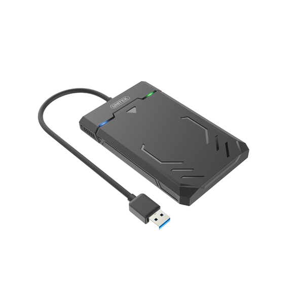 UNITEK USB3.1 SATA HDD enclosure. Supports 2.5" SATA HDD. Supports SATA 6G/3G/1.5G. Supports UASP (USB Attached SCSI Protocol) accelerates data trasnfer speed. Plug and Play. With e-sports style design, it is a hard drive enclosure that tailor-made for gamers. Integrated the USB cable with enclosure, easy to use and connect. With user-friendly tool-less design. With LED light indicates the working status. With USB3.0 SuperSpeed data transfer, transfer speed up to 5Gbps. Backward compatible with USB2.0/1.1. Support SATA III (6Gbps), SATA II (3Gbps) and SATA I (1.5Gbps). With UASP (USB Attached SCSI Protocol), accelerates the data transfer speed. Compatible with all 2.5" SATA HDD / SSD with any capacity. Support 9.5mm or below 2.5" SATA HDD / SSD with any capacity. With sleep mode function. Plug and play, no driver installation process needed. Hardware&;Dimension: Dimension: 130mm x 83mm x 15mm Upstream: USB-A Male Downstream: SATA6G Cable length / OD: 30cm / 4mm Color: Black Package Contents:1 x DiskGuard Raiden 2.5"1 x User Manual