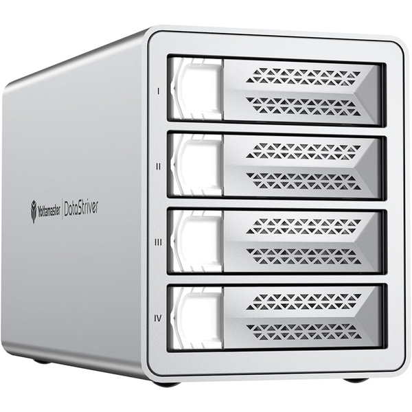 four hard drives with a maximum capacity of 88TB (22TB x 4). This 4-bay HDD enclosure is compatible with 2.5-inch SATA and 3.5-inch SATA HDD/SSDs. It is ideal for video editing, photo backup, archival backup, music libraries, financial records, video surveillance recordings, and corporate data storage.