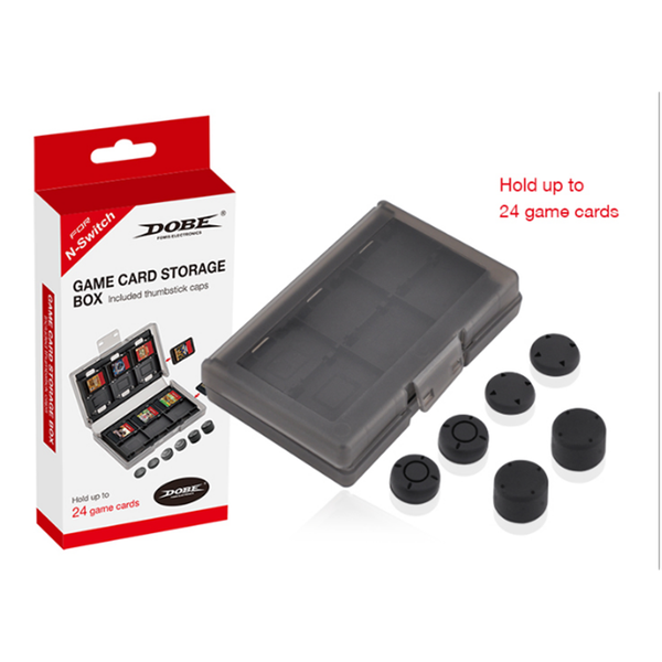 DOBE Accessory Set: Case for 24 Game Cards + 6 Black Joy-Con Stick Covers for Nintendo Switch/Lite - A practical and stylish solution for storing and transporting up to 24 game cards. transport, store and organize your game library with maximum security in one compact, reliable and beautiful accessory. Each cartridge is secured in its own compartment inside the DOBE case for Nintendo Switch - so your video game collection is reliably protected from drops and moisture. The thoughtful set includes a set of six pads of different heights - choose the size of pads that is comfortable for you and play your favorite games with even more pleasure!