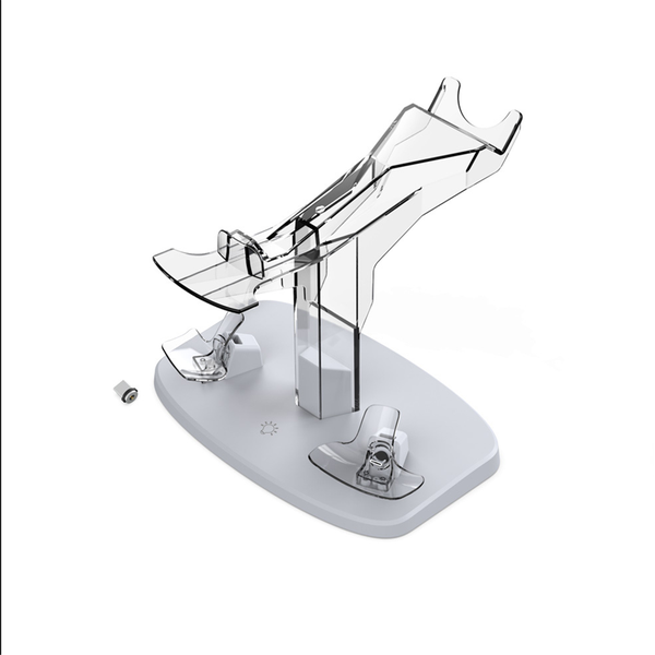 Product Description Compatible Models This charger stand is designed specifically for the PlayStation VR2. After the VR game is over, no need to connect a cable to the controller, just place it on the charging stand, making it a must have for gamers Uses high-quality materials Made of durable ABS material, which is environmentally friendly and can be used for a long time. The entire stand has a luxurious finish that matches the PlayStationVR, and it looks elegant as interior decoration just by placing it on the table Safe and Stable Fast Charging The built-in high-precision microprocessor chip control circuit, which provides safety protection such as overvoltage protection, overheating protection, and short circuit protection. When you install the dedicated charging attachment included with the controller, you can charge 2 devices simultaneously more efficient, safe, and stable LED Indicator Lamp Equipped with an easy-to-see LED indicator display that displays the charging status, and the orange light changes to blue while charging, allowing you to clearly identify the charging status of the controller. When the light is affected by a night sleep due to the glare, we also designed a thoughtful light up switch in the center of the space where the light up charging display can be turned off with a single touch Compact Storage When you charge the left and right controller, you can place the unused VR headset in the dedicated storage center holder. Neatly organize space around game consoles as well as a cluttered controller