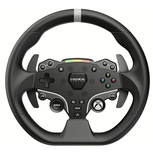 The MOZA ESX Steering Wheel combines official Xbox licensing with MOZA Racing's direct drive technology to deliver an unparalleled racing experience on both PC and Xbox. Built for durability and comfort, it features a solid aluminum alloy rim and non-slip, sweat-proof ISF PU grips, ensuring peak performance during intense races. Its compatibility with PC and Xbox platforms offers seamless versatility for gamers. The wheel boasts 22 customizable buttons, including two joysticks, allowing for comprehensive control and on-the-fly adjustments. Fully adjustable RPM LED lights bring a dynamic visual element to your setup, while the industry-leading MOZA quick-release system ensures effortless wheel swapping. Whether you're racing on PC or Xbox, the ESX Steering Wheel is the perfect choice for dedicated enthusiasts. Officially Licensed for Xbox Combining Xbox console performance with MOZA Racing direct drive technology for the most immersive racing experience. Durable ISF PU Grips Our non-slip, sweat-proof durable grips offer a premium feel whilst being environmentally friendly. Aluminum Wheel Rim The solid aluminium alloy rim ensures maximum rigidity, durability and immersion. MOZA QR System The Moza Racing QR system makes swapping wheels both easy and fast and is widely regarded as the best in the industry. 22 Customizable Buttons 22 fully customizable buttons allow for racers to make all of the on-board adjustments they need while in the heat of battle. Flow Shift Light Fully customisable flow shift Rpm LEDs add a unique touch to your racing setup.