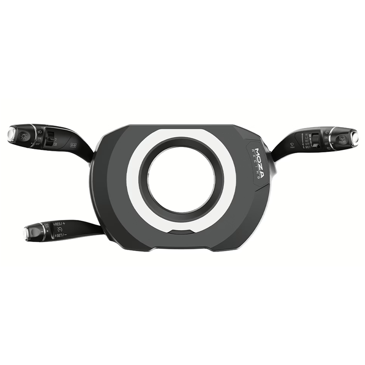 MOZA Multi-function Stalks The MOZA Multi-function Stalks are designed to elevate your driving simulation experience with authentic car-grade components, delivering a true-to-life feel. With 28 programmable switches, including wiper, headlight, and cruise control functions, these stalks cover all your driving needs. The auto-cancelling turn signals mimic real car behavior, adding to the immersion. Compatible with all MOZA bases and select third-party bases, the stalks are easy to install with a clean, sleek appearance thanks to the hidden screw design. Whether mounted in a standard or inverted setup, they provide ergonomic comfort and seamless integration into your racing setup. Authentic Car-Grade Components Built with the same components as real vehicles, the stalks, dials, and buttons deliver an authentic feel, providing a truly immersive driving experience. 28 Programmable Switches The stalks feature up to 28 programmable switches to cover all your driving needs. They are equipped with wiper and headlight controls, plus our unique cruise control functions. Auto-cancelling Turn Signals Mimicking real car functionality, the turn signals automatically cancel after turning, truly enhancing the driving simulation experience. Hidden Screw Design For a clean and sleek appearance, screws are hidden beneath magnetic plates once installed. Compatible with All MOZA Bases The MOZA Multi-function Stalks are compatible with all MOZA bases, from R3 to R21. They include brackets and extension rods for easy installation, supporting both standard and inverted mounting. The stalks can be directly mounted to bases with front mounting holes and adjusted for ergonomic comfort. They also connect directly to a PC and, with the right brackets, are compatible with third-party wheelbases. Dimensions