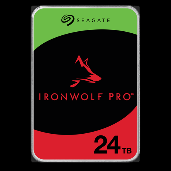 IronWolf Pro 24 TB IronWolf® Pro drives are engineered to deliver 24x7 performance, reliability, and dependability in multi-bay, multi-user commercial and enterprise RAID storage solutions. - High Performance: All-CMR (conventional magnetic recording) portfolio enables consistent, industry-leading 24×7 performance allowing users to access data anytime, anywhere- Class-Leading Dependability: Up to 550TB/year workload rating, 2.5M hours MTBF for unparalleled total cost of ownership (TCO)- IronWolf Health Management: Helps protect data with prevention, intervention, and recovery recommendations to ensure peak system health- Optimized for NAS: AgileArray with dual-plane balancing, time-limited error recovery (TLER), and rotational vibration (RV) sensors to deliver top RAID performance in multi-bay environments Enterprise NAS Drive Always on, always accessible, all-CMR portfolio engineered to deliver 24x7 performance, reliability, and dependability in multi-bay, multi-user commercial and enterprise RAID storage solutions.