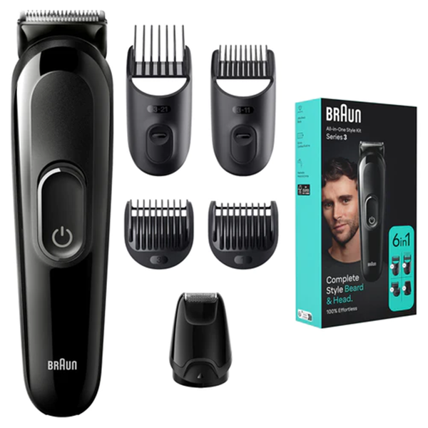Braun's 6-in-1 Style Kit for beard and face grooming Curated tools for beard, beard clipping, precision shaving, and hair clipping from home. Your style, effortlessly The ultra sharp blade is efficient for fast grooming all over. Easily style, no matter the length Great results on any hair length with 1 &; 3mm fix combs and sliding beard combs (3 - 21mm). Ready to use This grooming kit for men has a powerful Ni-MH battery with a 50-minute cordless runtime. Clean with ease The device has washable heads and combs plus a cleaning brush.