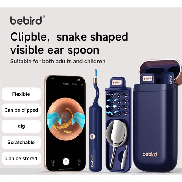 Bebird Smart Ear Wax Removal Ear Sight Plus Bendable Lens: Constructed with innovative materials and structure, the device can bend, twist, and conform to various shapes without compromising performance or visibility. Manual Tweezers: A precision tool for grasping and manipulating small objects. Offering precise control and accuracy these tweezers are designed to handle delicate tasks with accuracy. Portable Storage Case: Made from high-quality materials, this storage case is durable and designed to safely store your device for easy transport for health care, anywhere.