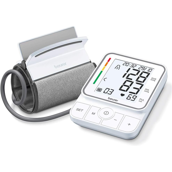 BM 51 easyClip Upper arm blood pressure monitor - Innovative easyClip cuff (22-42 cm): Easy to fit with just one hand- Inflation technology: fast and convenient measurement which is already taken while the cuff is being inflated- White illuminated, easy-to-read XL display Upper arm blood pressure monitor with inflation technology &; easyClip cuff Forget awkward cuffs on measuring devices which are difficult to put on by yourself: the fully-automatic Beurer BM 51 features an innovative easyClip cuff which you put on with just one hand. For quick and automatic measuring. - Innovative easyClip cuff: Easy to fit with just one hand- Inflation technology: fast and convenient measurement which is already taken while the cuff is being inflated- White illuminated, easy-to-read XL display- Fully automatic blood pressure and pulse measurement on the upper arm- Automatic measurement even during inflation- Average of all saved measured values- Two user memories for 100 measured values each- Risk indicator- Arrhythmia detection- For upper arm circumferences from 22 to 42 cm- Date and time/automatic switch-off- Incorrect usage message Inflation technology Fast and convenient measurement which is alreay taken while the cuff is being inflated. easyClip Innovative easyClip cuff (22-42 cm): easy to fit with just one action. Risk indicator Classification of measurements with coloured scale Arrhythmia detection Warning function for possible disturbance in heart rhythm Display Easy-to-read, white illuminated XL display.