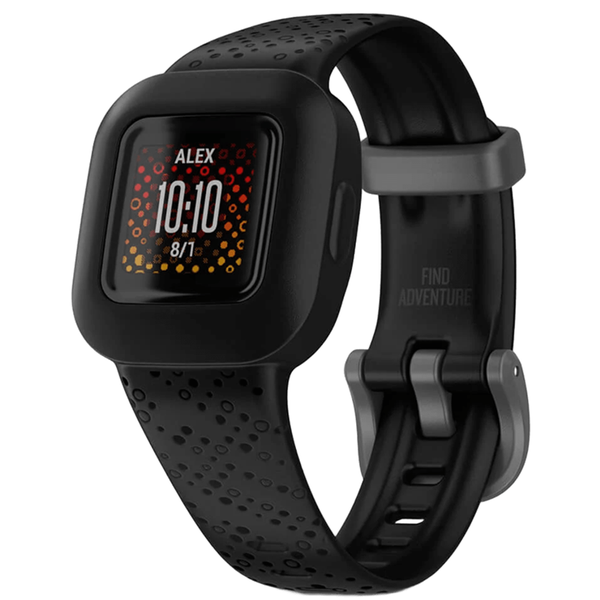 Garmin vivofit jr. 3 - Black Cosmic vivofit jr. 3 isn't just a fitness tracker for kids. It's an interactive experience where your child's activity unlocks educational globe-trotting app adventures[1]. - This durable fitness tracker is swim-friendly - perfect for your kid's around-the-world adventures.- No need to pack the charger. This easy-to-replace battery lasts up to 1 year.- Your child will be ready for any occasion with a colour display and multiple watch face options.- Parents can use the app[2] to manage chores and give rewards to their little world traveller.- What new places will your child explore? Playtime unlocks educational adventures, games and icons.- No matter where your kid roams, track steps, sleep and daily activity[2].