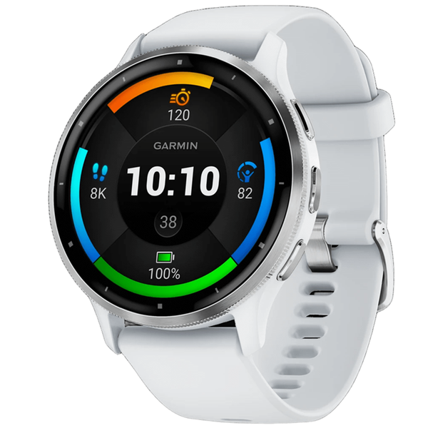 Garmin Venu 3 Silver stainless steel bezel with whitestone case and silicone band Purpose-built with advanced health and fitness features and the ability to make calls and send texts[1], Venu 3 is more than just a fitness smartwatch - it's your personal on-wrist coach there to support your every goal. - Bright 1.4" Amoled touchscreen display- Up to 14 days of battery life in smartwatch mode- Detailed health and wellness insights- Advanced fitness features- Works with the Garmin connect™ app on iPhone® and Android™ smartphones- Lightweight 45 mm case with stainless steel bezel