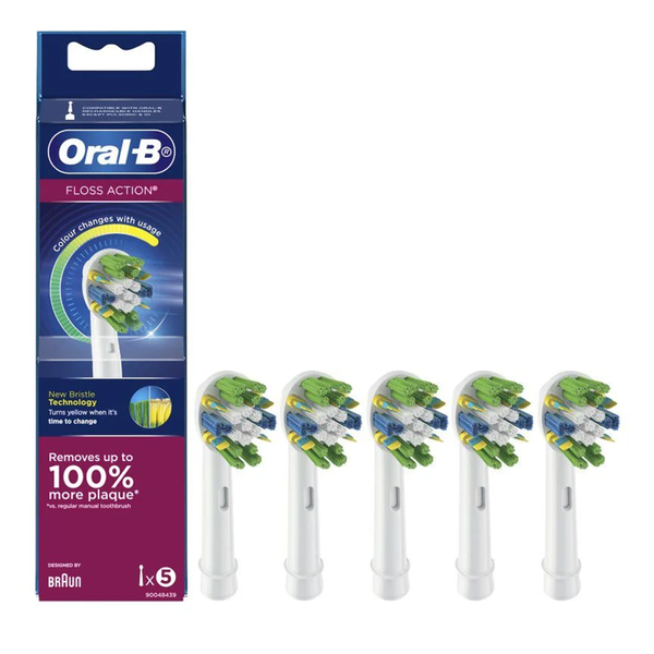 New Bristle Technology: Oral-B Floss Action brush head turns from green to yellow, indicating when it is time to change. Features MicroPulse bristles that help provide a superior deep clean between teeth*. The bristles on the round brush head are designed to clean deep between teeth to remove up to 100% more plaque leaving your whole mouth cleaner than a regular manual toothbrush - Features soft MicroPulse bristles - Provides a superior clean - Cleans deeper between teeth vs a regular manual toothbrush - Compatible with all Oral-B rechargeable handles (except iO Series/ Battery/Sonic brushes) - Oral-B, #1 Toothbrush Brand Used By Dentists Worldwide *This refill is not compatible with the iO range. Floss Action Bristles Loosen plaque in between teeth* *does not replace flossing