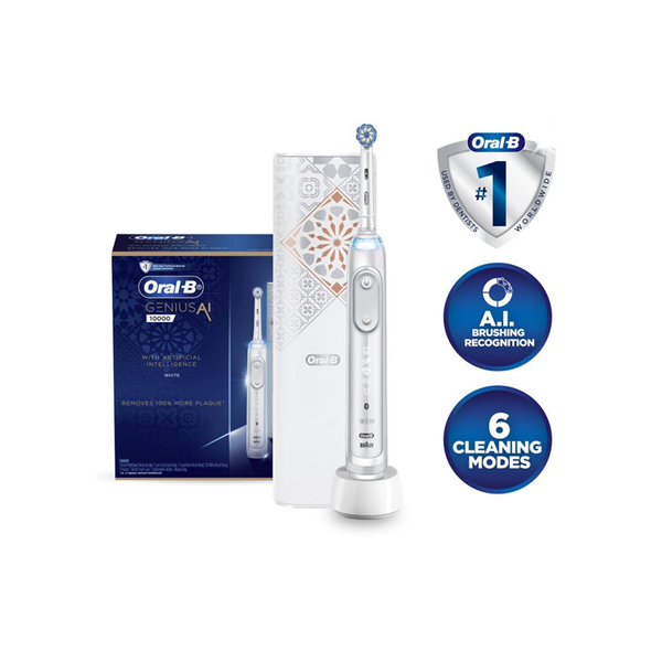 Oral-B Genius AI 10000 (White) with Artificial Intelligence, Electric Toothbrush Artificial Intelligence recognizes your brushing style, for your best results every day. Removes 100% more plaque