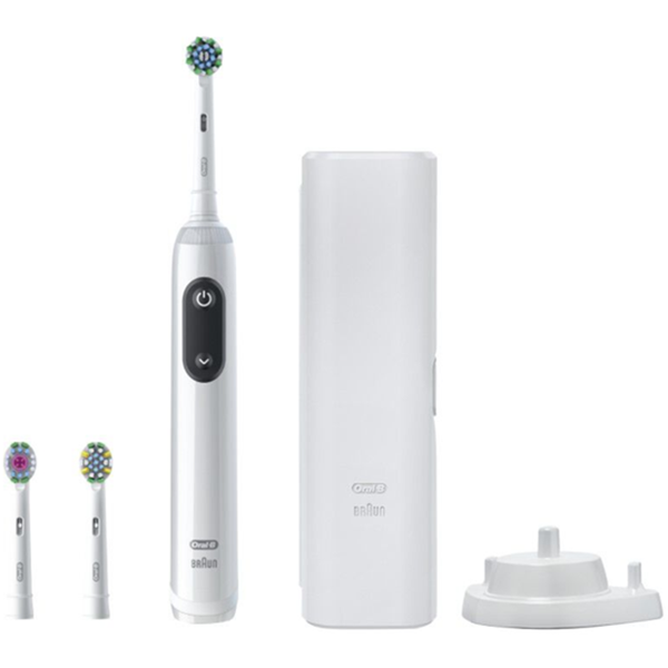 The Oral-B Pro 5000 Electric Rechargeable Toothbrush Removes up to 100% more plaque &; Improves Gum Health versus a regular manual toothbrush. The professionally inspired design of the CrossAction brush head surrounds each tooth with bristles angled at 16 degrees, and 3D cleaning action oscillates, rotates, and pulsates to break up and remove more plaque along the gumline vs a regular manual toothbrush. The brush head removes 100% more plaque &; improves gum health vs. a regular manual toothbrush for a professional clean feeling every day. Brush head with X-Filaments is included to give you a better clean vs regular bristles. The brush's five Personalized Brush Modes (Daily Clean, Intense Clean, Sensitive, Gum Care and Whitening) give you an experience all your own. Find the Brush Mode for you or change it up to target a different concern! The included pressure sensor lights up if you brush too hard to prevent harmful over-brushing, protecting your gums in the process. The easy-grip handle is here to assist you through your brushing experience. A Built-in-2-Minute Timer ensures an even easier experience, helping you get an optimal clean on all of your teeth. The Oral-B's quadrant timer breaks the two minutes up into four 30-second intervals to clean each quadrant of your mouth; we keep the time, so you don't have to! The Oral-B Pro 5000 Electric Rechargeable Toothbrush comes with an accompanying travel case. You'll have a fresh clean everywhere you go. We're with you on your next trip or even your mid-day on-the go brushing! Best of all, it is brought to you by Oral-B-the #1 brand most used by dentists worldwide. *Based on surveys of a representative worldwide sample of dentists carried out for P&;G regularly.